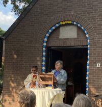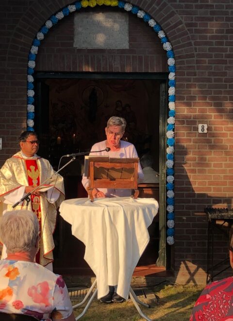 Op dinsdag 20 mei werd de Mei-viering gehouden in de Heyerkapel. Daarbij waren zo’n 60 leden aanwezig. Pastoor Amal ging voor in deze viering, Paulo uit India vertelde zijn indrukwekkende levensverhaal. De viering werd afgesloten met een mooi gedicht: Moeder, de mooiste naam op dit wereldrond.