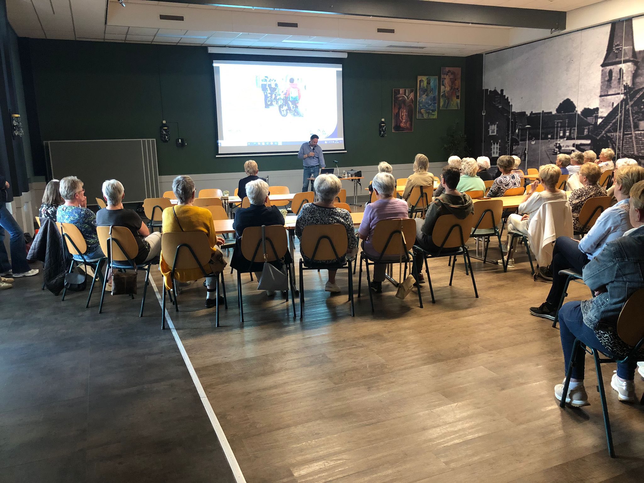 Dinsdag 10 juni gaf Sander Nuij, van: Fiets Midden Limburg Bereikbaar, een presentatie “Doortrappen” over verkeersveiligheid met praktijkvoorbeelden, veel handige tips en informatie om veilig en langer te blijven fietsen. Sander gaf ons ook inzicht in het gevaar van de dode hoek bij vrachtwagens.
