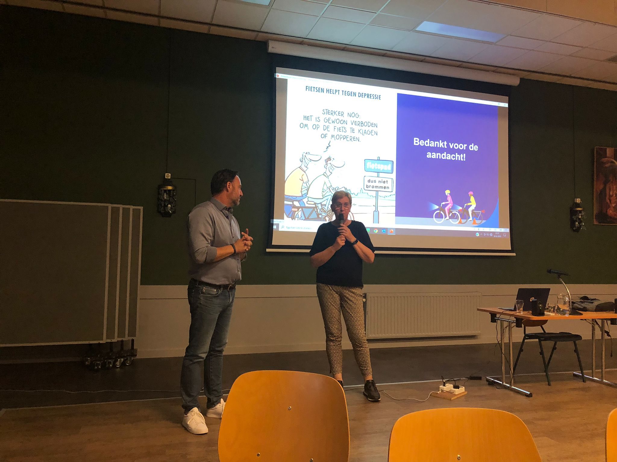 De presentatie werd door een fysiotherapeut aangevuld met tips over vitaal en actief blijven op de fiets. Gezondheid en bijvoorbeeld voldoende bewegen spelen daarbij een rol. Als je regelmatig beweegt, zit je sterker en soepeler op je fiets.