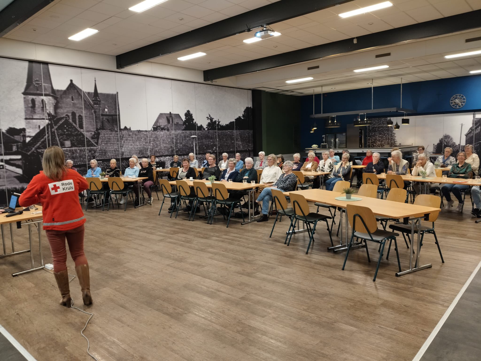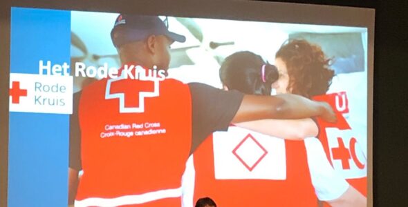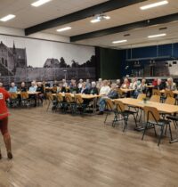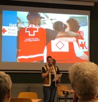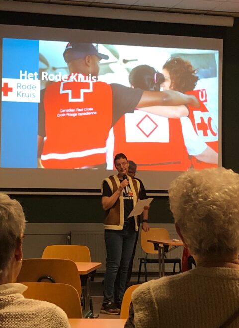 Dinsdag 21 oktober kwamen 2 gastsprekers van het Rode Kruis vertellen over het humanitair oorlogsrecht én het Rode Kruis. Met als kern: respect voor de menselijke waardigheid in de meest onmenselijke omstandigheden. Het Rode Kruis zet zich elke dag in, om te zorgen dat strijdende partijen de regels kennen en respecteren. Regels wereldwijd vastgelegd in het Eerste Verdrag van Genève in 1864. Na de pauze werden er vragen gesteld door de gastsprekers aan de hand van beelden, die soms erg schokkend waren en kwam er een interactie op gang tussen de gastsprekers en onze 46 aanwezige leden.