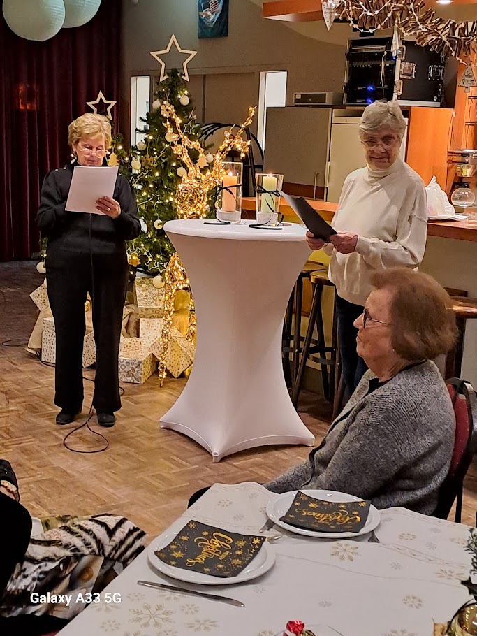 De jaarlijkse kerstviering was weer bijzonder sfeervol en gezellig ! De middag werd geopend door Bertie Bemelmans met een rustig en bezinnend moment. Aansluitend droeg Annie Moonen een prachtig gedicht voor. Daarna was het tijd om te genieten van een heerlijk buffet. De fijne gesprekken aan tafel droegen bij aan een gezellige kerstsfeer. Mooie kerstliederen werden er gezongen door het koor YOY uit Rimburg