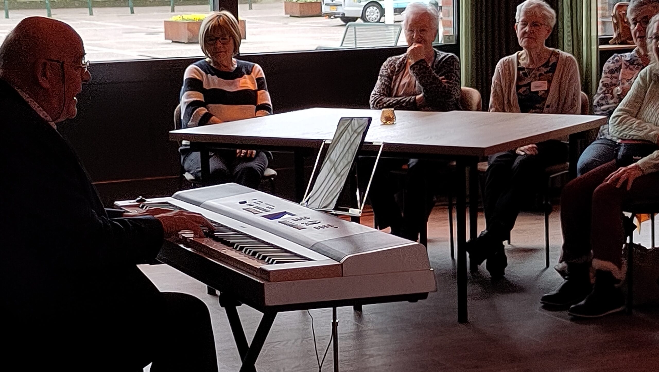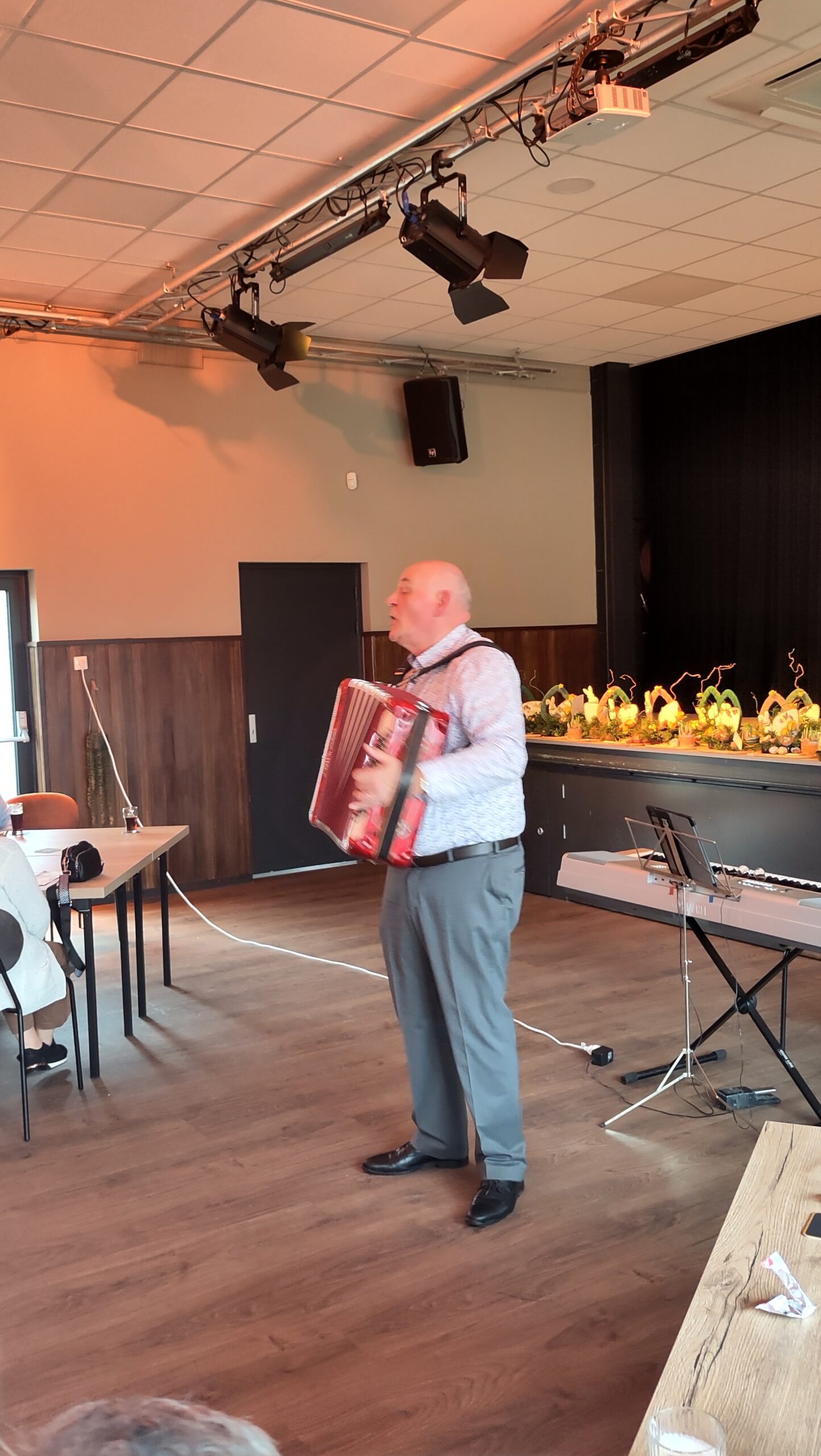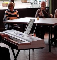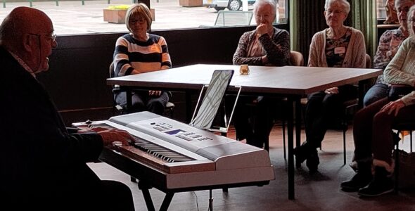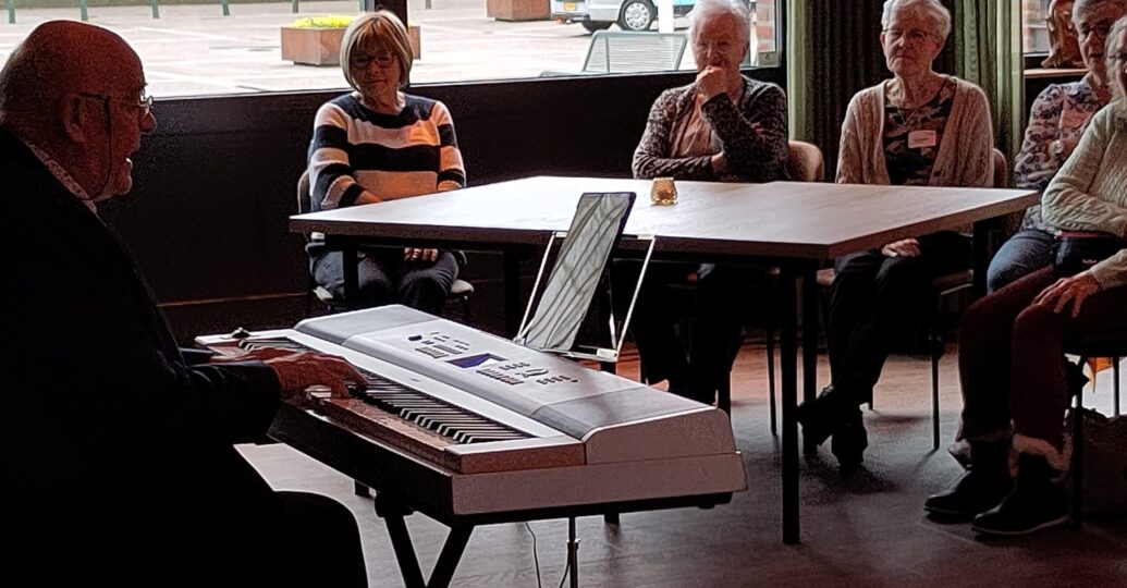 Na de lunch werd deĀ zaal snel opgeruimd want er moest muziek gemaakt worden. Eerst op de piano en daarna op de accordeon. Mooi en nostalgische liedjes, waarbij de zaal vrolijk meezong en meedeinde. Een mooie dag, die door iedereen als heel fijn werd ervaren.
