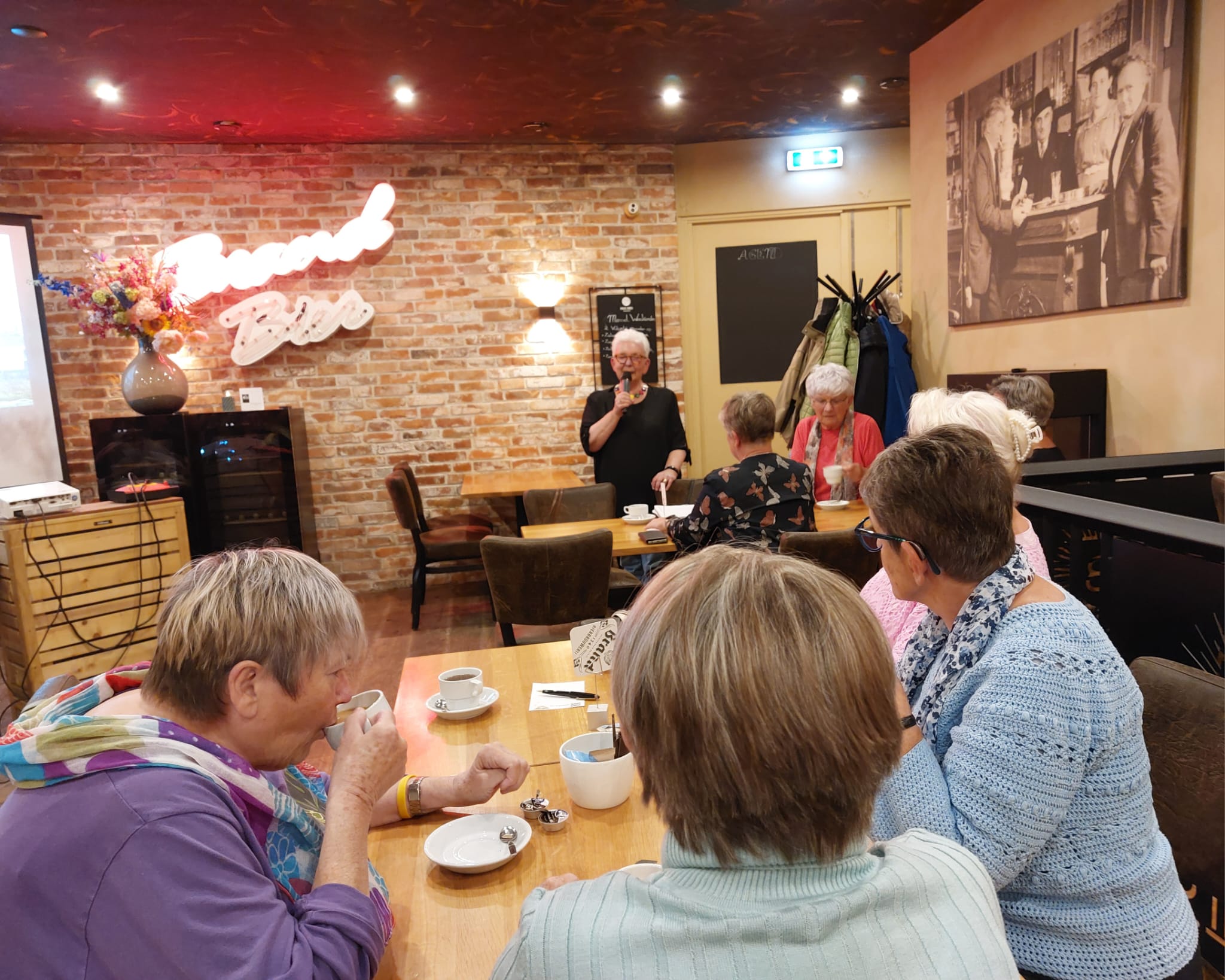 Voordat de presentatie begon stond onze voorzitster stil bij het overlijden van ons lid Emily Habets-Piters, die in januari 2026 70 jaar lid zou zijn van onze vereniging. Helaas kon ze de laatste jaren niet meer actief deelnemen aan de activiteiten, maar van haar overbuurvrouw hoorde ze toch de verhalen over ZijActief. Al die jaren bleef ze trouw haar contributie betalen. Zaterdag 13 september hebben we afscheid van haar genomen in de kerk van Oost-Maarland.