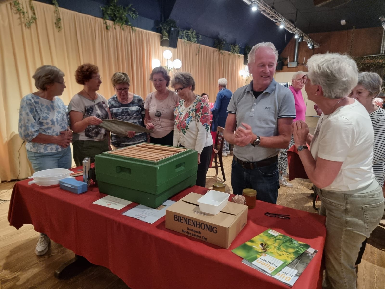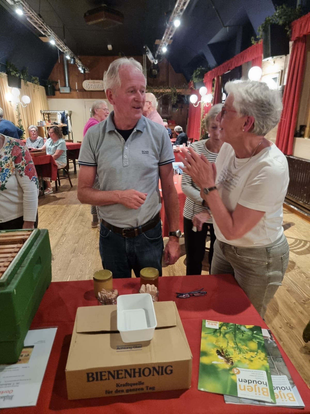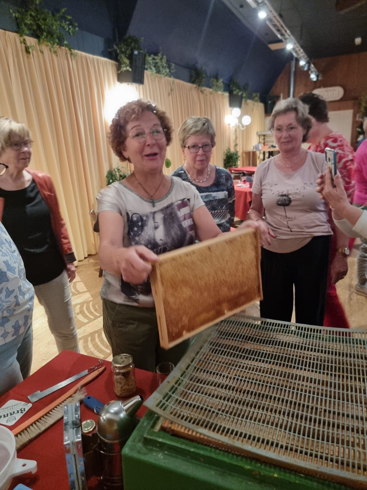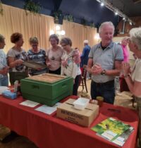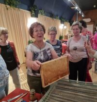Ons eigen lid Tiny Mullenders heeft samen met haar man een presentatie gegeven over de fascinerende wereld van de honing bijen. Voor de aanwezigen was tevens een kennismaking met het werken en verzorgen van een bijenkorf, de imkerij. Er werd verteld over de praktijk van imkeren waarin een jaarlijkse cyclus voorbij kwam met plaatjes en filmpjes. Ook werden er imker materialen getoond. Uiteraard kon het eindproduct de honing geproefd worden!