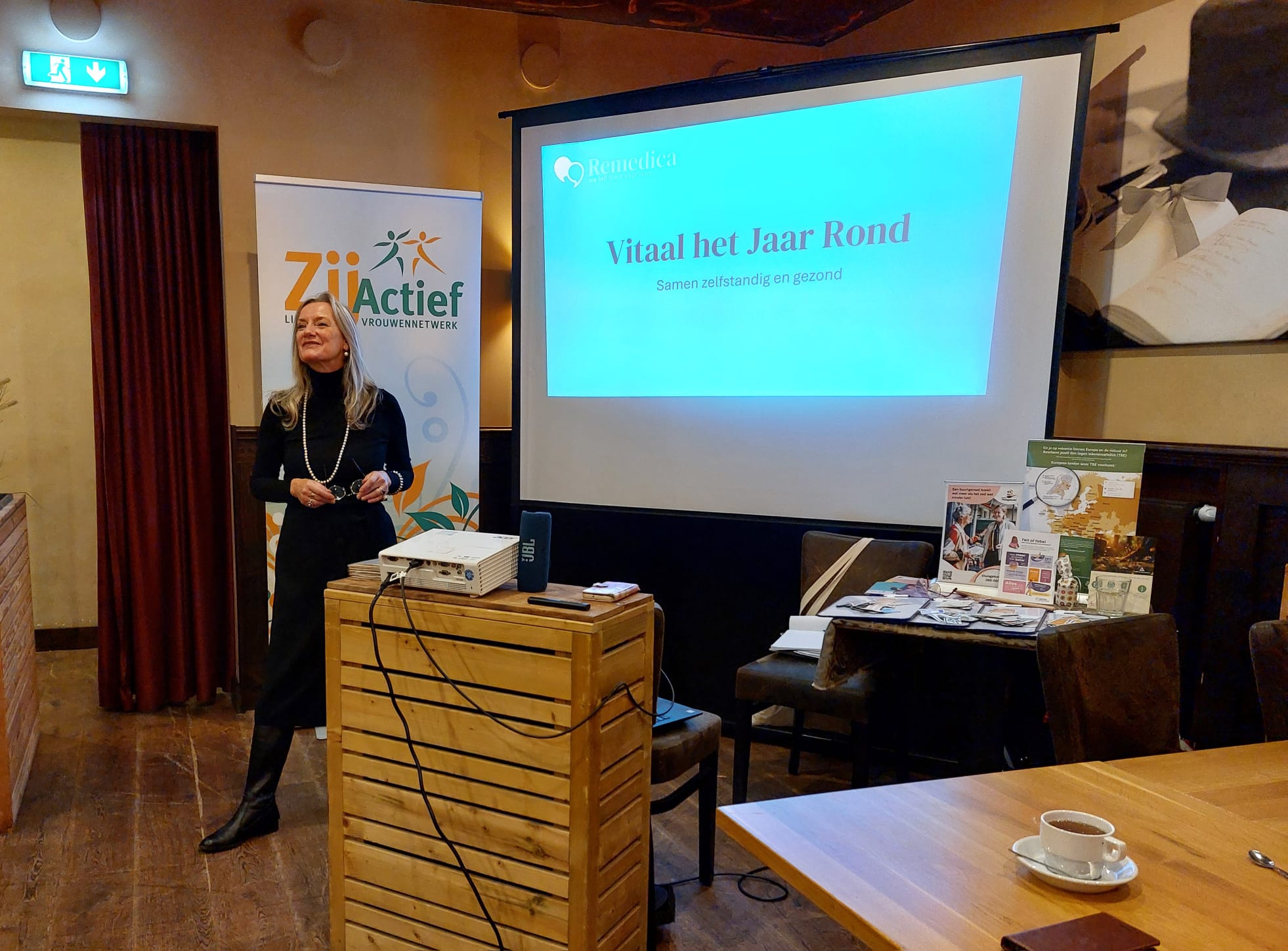 Dinsdagavond stond in het teken van vitaliteit, verbinding en inspiratie. Christianne Rousseau, van Remedica, kwam een lezing geven aan de dames van onze afdeling. Met 37 vrouwen kwamen we samen voor een dynamische workshop waarin gezondheid en welzijn centraal stonden. De sfeer was goed en er werd volop gepraat, bewogen en gelachen. We kregen veel informatie over het voorkomen van tekenbeten en tips waar we Sudocreme allemaal voor en tegen kunnen gebruiken. We deden zelfs met zijn allen stoelyoga. Natuurlijk las Jeanne ook weer een versje voor uit eigen werk. Deze keer over het belang van huidverzorging 😉