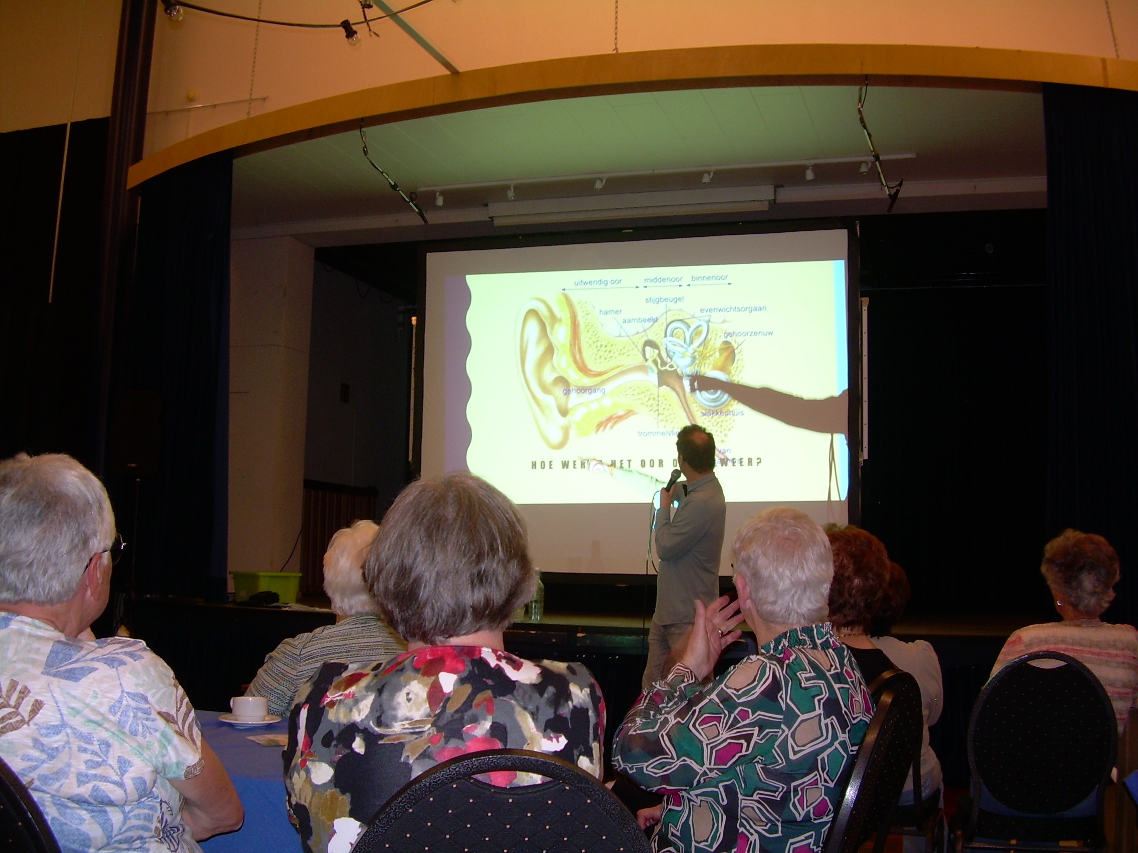 Cas vertelde zijn verhaal op een prettige en vaak humoristische manier. Hij nam ons mee in zijn leven, vanaf zijn doofheid van jongs af aan. Over de overgang van de dovenschool naar het regulier onderwijs en zijn succes op de PABO. Inmiddels staat hij zelf voor de klas op een basisschool.