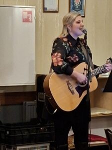 Een groot gedeelte van de avond werd opgeluisterd door zangeres Aimee Baars met zang en gitaarspel.