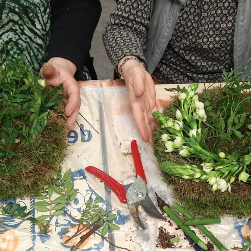Met maar liefst 29 enthousiaste dames gingen we aan de slag om de mooiste bloemstukken te maken.