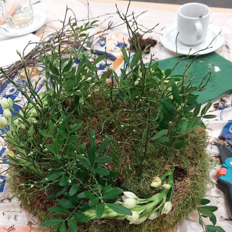 Door alle gezelligheid en het fanatieke bloemschikken was er eigenlijk nauwelijks tijd voor koffie β al hebben we tussendoor toch nog even kunnen genieten van een heerlijk stukje cake. π°