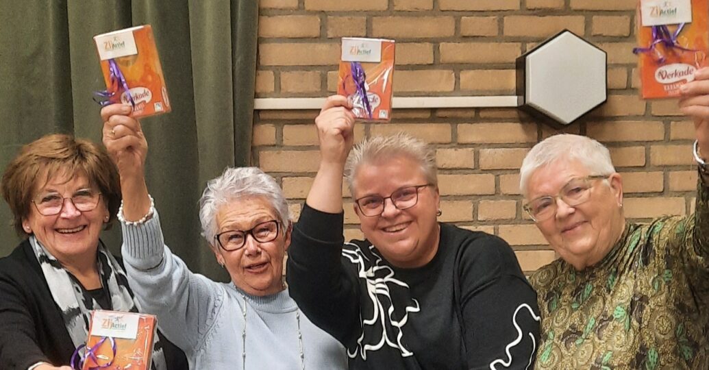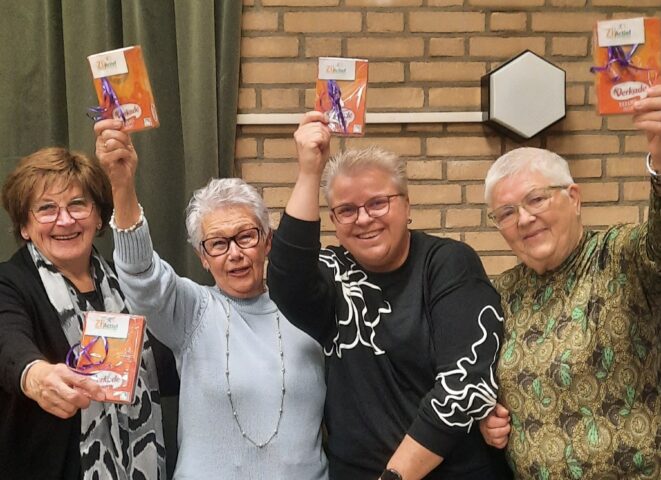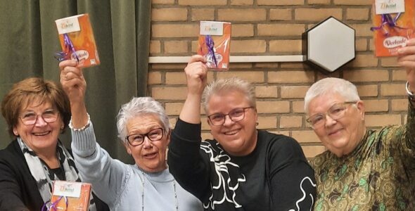 Onze quizmaster hield de touwtjes strak in handen om uiteindelijk aan het ‘kavelen’ te beginnen, er waren drie groepen die een gelijk aantal punten hadden gescoord en er was maar een eerste prijs. Maar ook dit onderdeel verliep in volledige harmonie, waarna we aan de tombola begonnen en veel dames uiteindelijk met een leuk prijsje naar huis gingen.