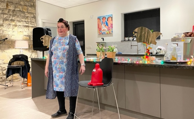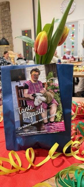 Na de pauze ging Tante Agaath, in de BUUT. Ze was condomoloog en bracht leuke, soms pikante sketches naar voren. Maar onze leden konden dit wel aan. Ha, Ha!