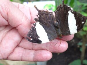 Of dat nog niet genoeg was werden we even verder bij de vlindertuin afgezet en probeerde een ieder de fladderende vlinders op de foto te vangen. Een hele uitdaging!!